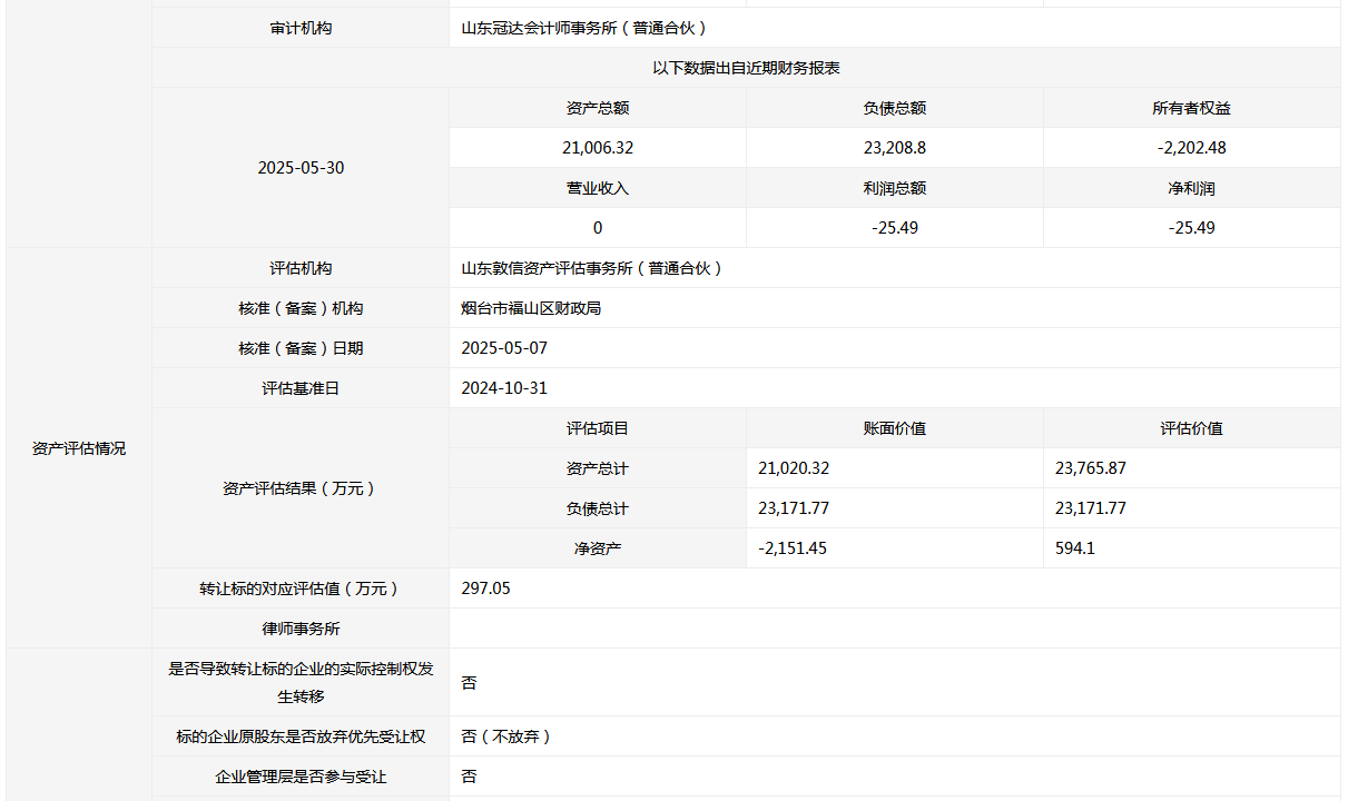 - 轉(zhuǎn)讓方: 煙臺(tái)市福山區(qū)財(cái)政局(煙臺(tái)市福山區(qū)國有資產(chǎn)監(jiān)督管理局)