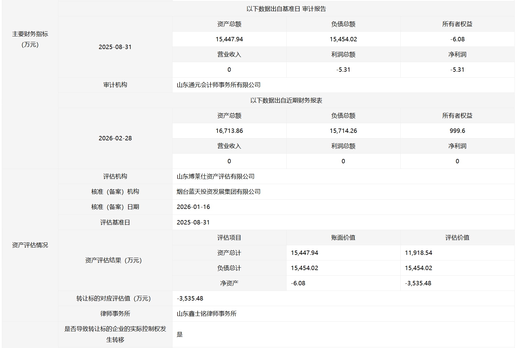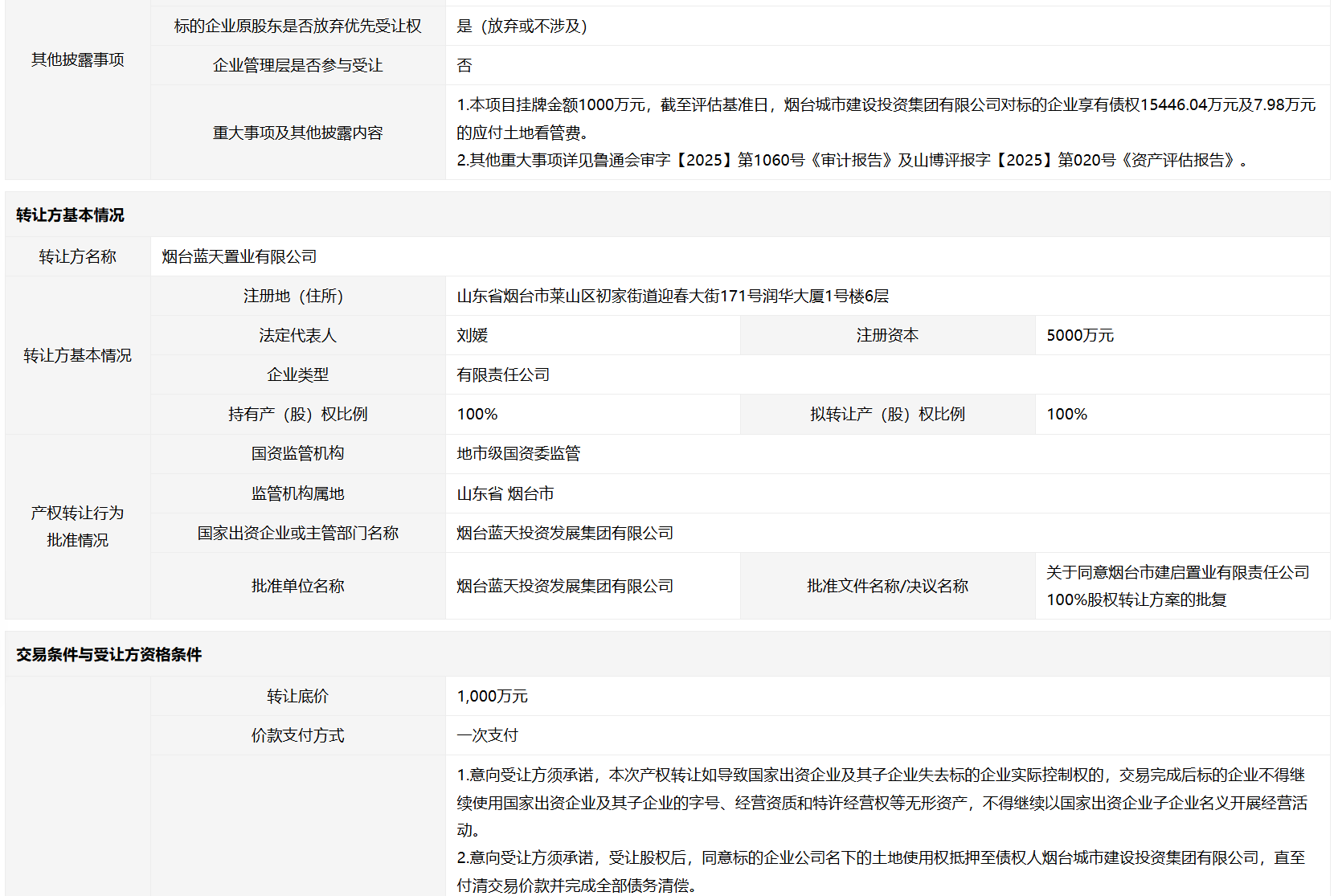 轉讓方: 煙臺藍天置業(yè)有限公司