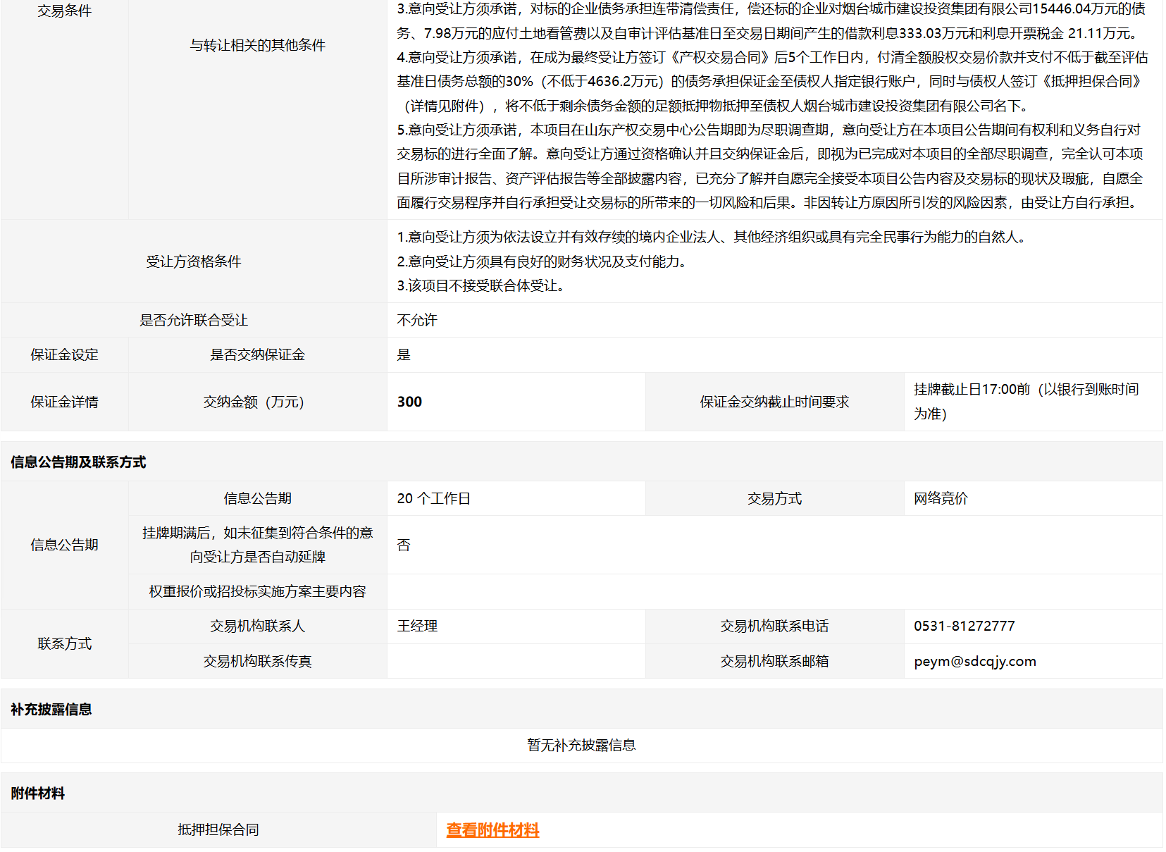 煙臺市景新置業(yè)有限公司50%國有股權