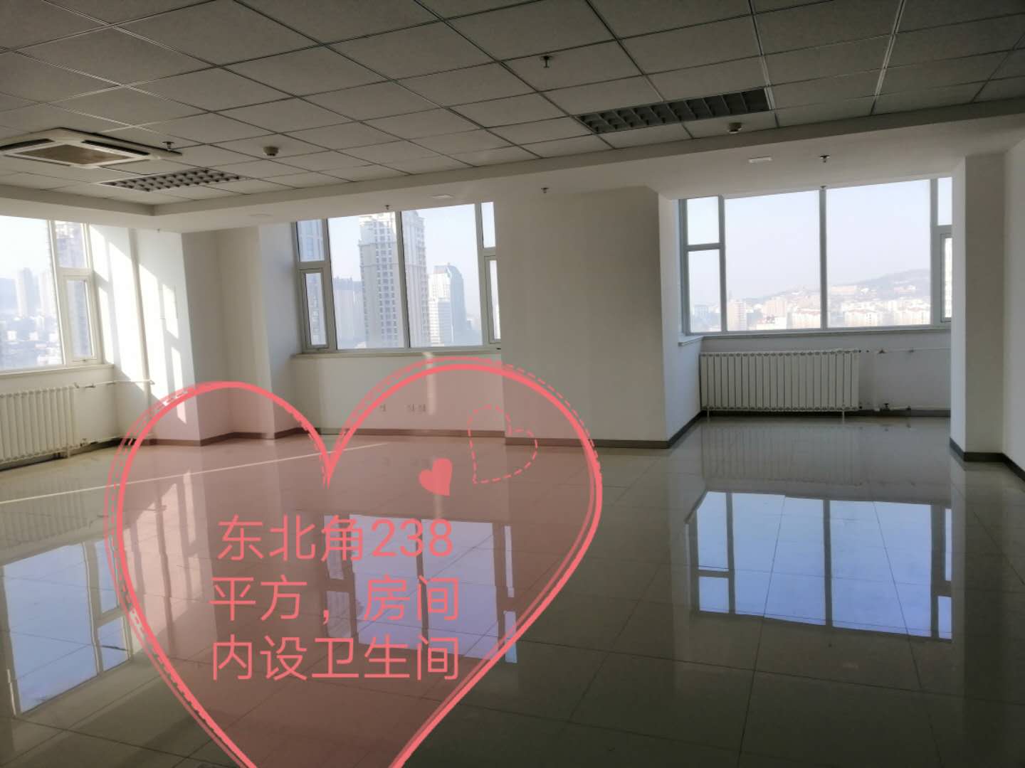 精裝修寫字間面積從48-238㎡不等,有不同種類的戶型,可滿足您各種需求;另有兩層未裝修的樓層也可供選擇;網(wǎng)點房一間面積277㎡,廣場場地同時對外出租。