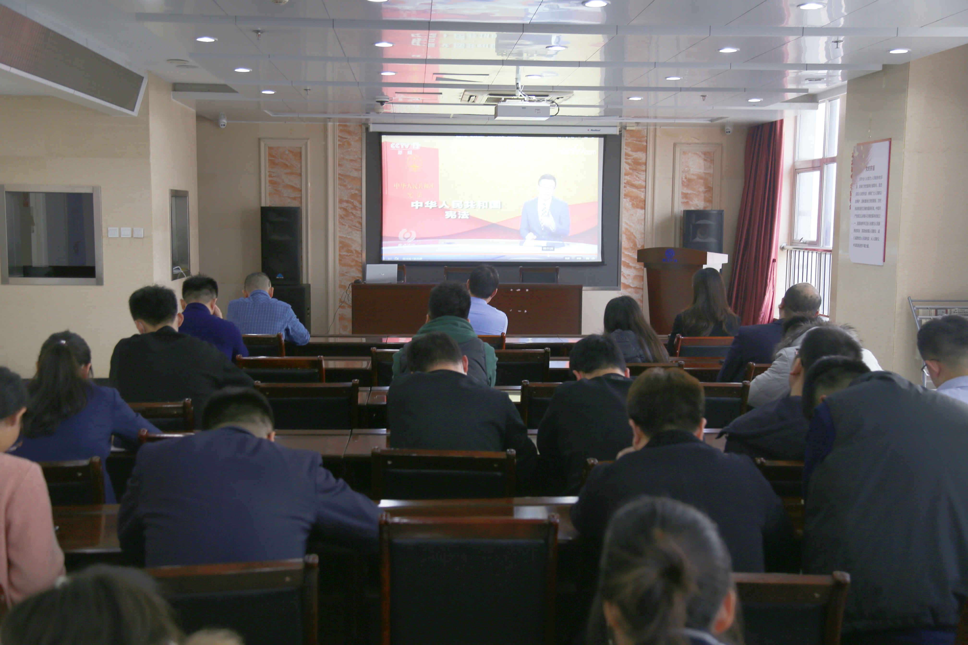 活動(dòng)中,視頻教學(xué)方式,向全體職工干部宣講與生活息息相關(guān)的法律法規(guī)、糾紛化解等相關(guān)憲法知識(shí),積極引導(dǎo)職工遵法、學(xué)法、懂法、用法,遇事找法、解決問(wèn)題靠法。
